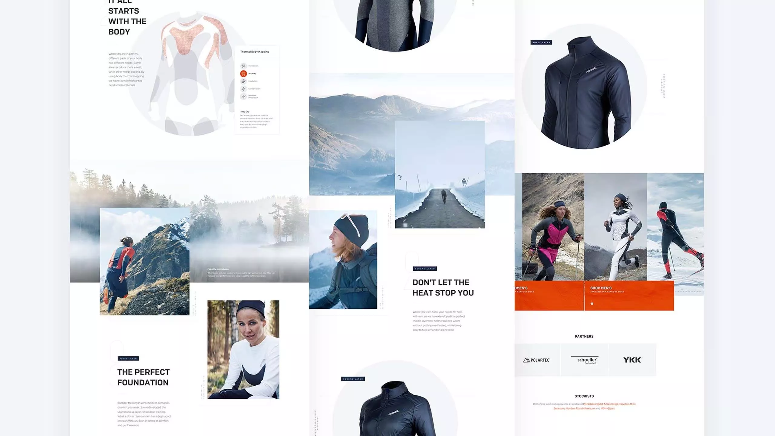 We developed a straightforward, scrolling narrative, mixing outdoor imagery and product photography. This highlights the many features, such as wicking, support, and possible combinations between the different garments.