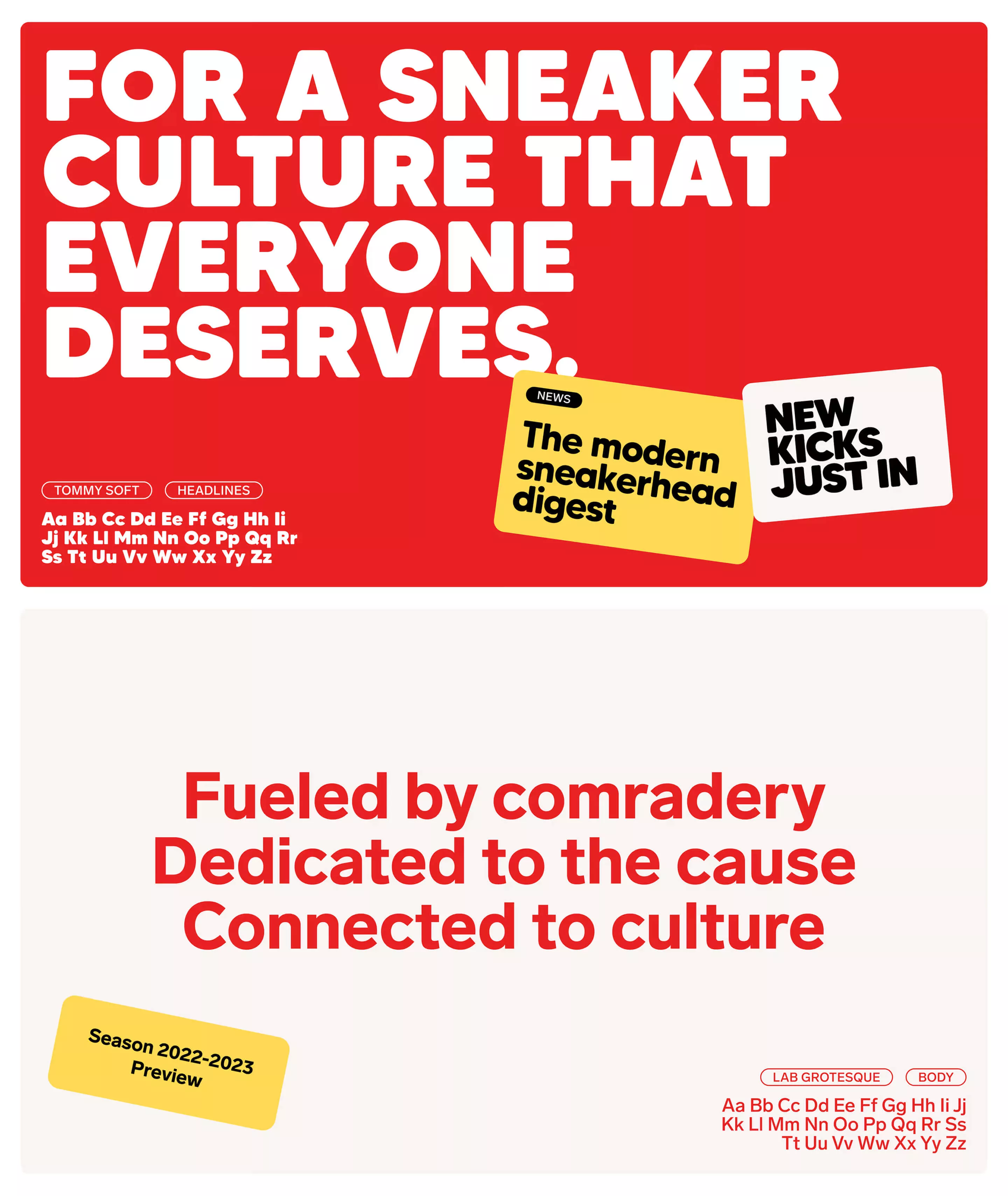The concept aims to bring heritage passion to the future. While the street culture references, such as the basketball orange, Brooklyn brick red, and vibrant shades of graffiti, still lie at the core of the brand, the new typography injects the subtle, robust feel of tech. It’s balanced with the warmer feel of hand-drawn illustrations.